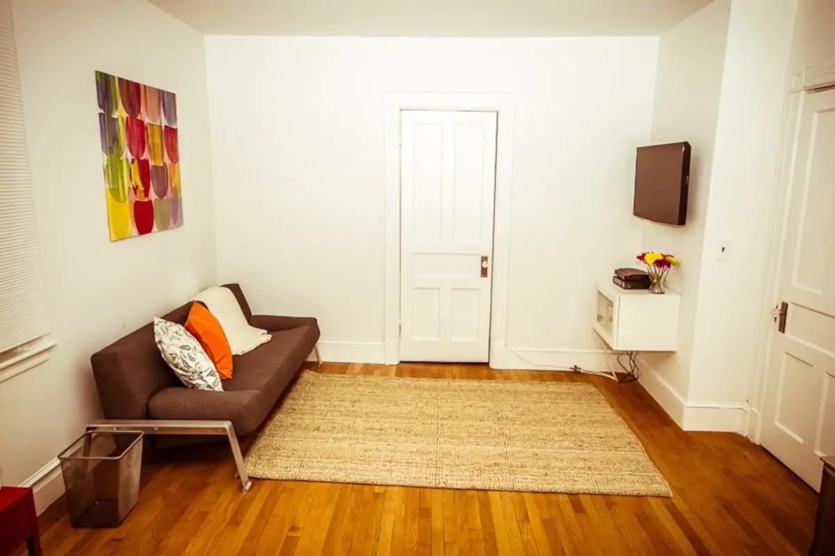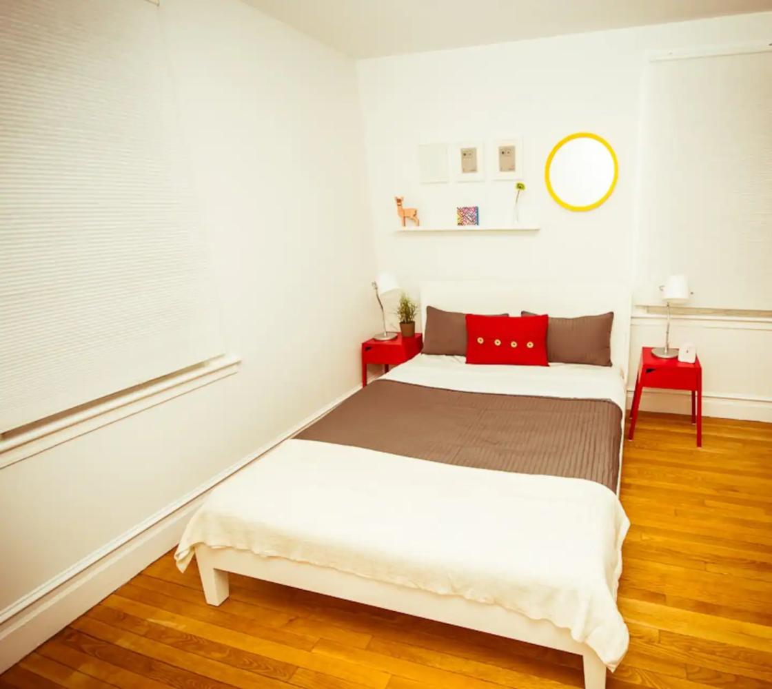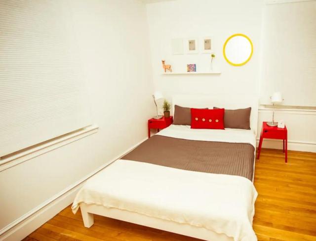 Room is located in 2nd floor apartment. It has a queen size bed and a sofa bed. Common areas such as kitchen and bathroom are cleaned several times a week.